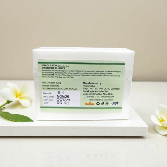 Khadi Satva Jasmine Soap | 100% Pure & Natural Handmade Bathing Bar | Original Indian Ayurvedic Brand | Refreshing Floral Soap for Soft & Glowing Skin | Paraben & Sulphate Free (125g)