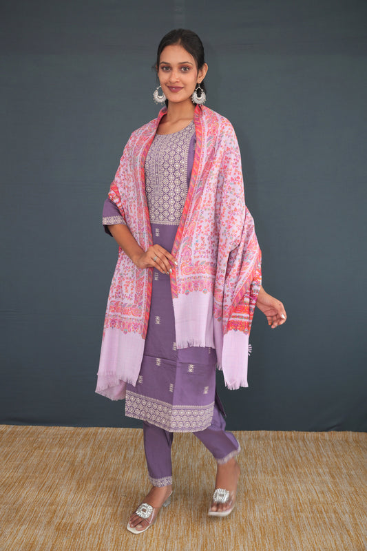 Lavender Handwoven Khadi Silk Suit Set for Women | Embroidered Kurta with Pants & Dupatta | Elegant Festive Ethnic Wear