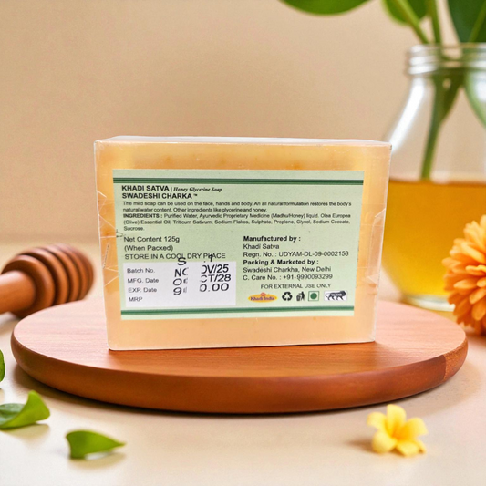 Khadi Satva Honey Glycerine Soap | Original Indian Ayurvedic Brand | 100% Pure & Natural Handmade Bathing Bar | Deep Moisturizing Soap for Soft & Glowing Skin | Paraben & Sulphate Free (125g)